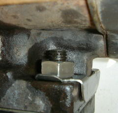 スタッドボルトとパイプとのクリアランスが無さ過ぎて、メガネが入らないのです(大笑い