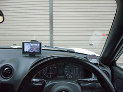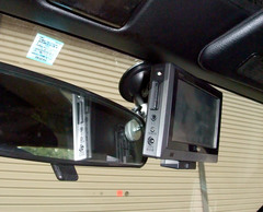 この、ルームミラー付近に取り付けは、通常視界からあまり視点を動かさずに見られるので、視点移動って点ではいいんですが、運転中にナビを見ると、ピントが遠→近となるのが結構疲れるのと、結局表示情報が確認できるまでに時間がかかるってことで実はイマイチっぽい。