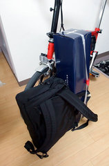 会社から帰ってくるのに、PCバッグを背負えるようにして、横に箱くっつけて