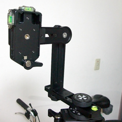 カメラボディのほうで、レンズの中心線の延長上に、三脚の取り付け穴が空いてる場合はいいんですが、コンパクトカメラのように、レンズは本体の左よりで、三脚穴はほぼ本体の中央。みたいな場合には、このアダプターを使って、レンズがアングルの中心に来るように左右オフセットしてNodalNinjaに取り付けるのです。
