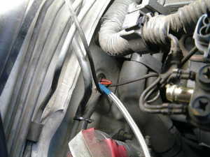 さてセンサーの配線は前から見てサージタンク(コレクタータンク)の後ろのボディ側にグロメットがあるので、そこを通します。すでに3本くらい通っていたのできついかな・・?と思ったけど無理やり通す。