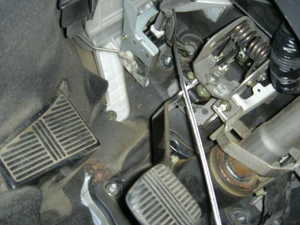 室内へはクラッチペダルの左上のほうに出てくるので、引っ張り出しておきます。