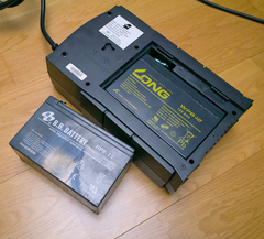 自宅の方はまだ落ちたことないのですが、都下と会社はポコポコと落ちやがるので、買ったけどあんま使ってなかったUPSとか引っ張り出してみるも当然過放電・・