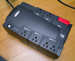 あと、会社の自分マシン用に、上の方のUPS(ドスパラPBの)をヤフオクで同じモノが出てたので落札してみた。送料入れると5500円くらいだったけど、まぁ安いものです。