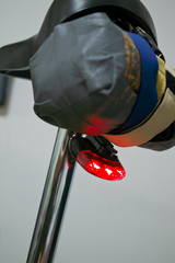 単4 2本(もちろんエネループ入れた)駆動で、周囲が明るいと点灯しなくて、暗いとき、振動を感知すると勝手に点滅します。静止すると15秒後に消灯するというスグレモノ。