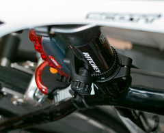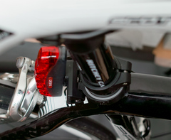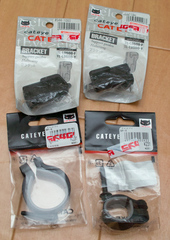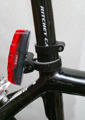 昔の商品はみんなこのブラケットが付いてたと思うんですけど、最近のキャットアイのは簡単ブラケットみたいなのになってて、手回しで工具無しで付けられるのはいいけど、でかいのよね。