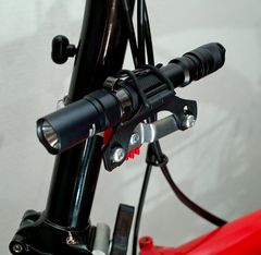 折りたたみの時シートポスト格納の邪魔になるので、ブラケットをなるべく上の方に付けたので斜め下向いちゃってますけど視認性は特に損なわれてなさそうなので超OK