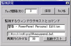 ここで監視間隔やら監視する文言やらコマンドを設定。