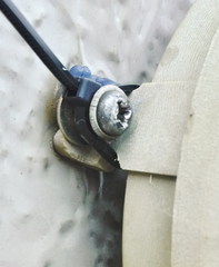 本体はワッシャーで押さえて、ギボシ部分とリューターでつくったくびれ部分にタイラップ通してサポ