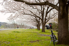 多摩川CRもところどころ桜が咲いていてまったり。曇りだけど。