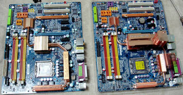 で、右が今回のGA-P35-DS4で、左が今までのGA-965G-DS4です。まぁなんかパーツ構成は似てるよなー。大丈夫かしらね。