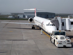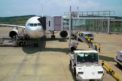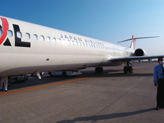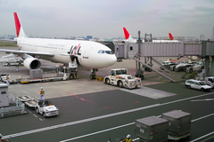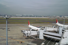 羽田ではエプロンでタラップ降りてバスに乗り換え