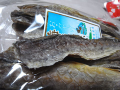 チョー硬いので、あぶって柔らかくするか、硬いままならハサミとかで切って食いました。味はいいです。タラっぽい?