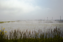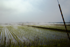 ところで離陸してすぐ、上昇中に雲に突入?と思ったらさっきのもやが一面に・・田んぼで発生した水蒸気が上空200mくらいのところで厚い雲みたいになってました。