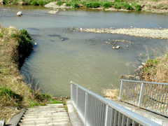 これにも一匹写ってるけど、30~40cmの鯉と思われる魚影がうようよと。すげー。ただこの地点も、ここからちょっと下流までもたまに流れの緩やかで濁った水のところでは同じような鯉がすげーいっぱいいたけど、釣りしてる人はいなかったので(更に下流にはいた)、ここらへんは禁漁なのかしら?