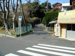団地脇の道を走っていくと、突き当りでちょっとUターン気味に道が曲がった後、この寂れた商店跡があるので、その横の坂を上る。