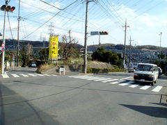 細い道を抜けて車道に出たら右折すると、この交差点に出るので、
