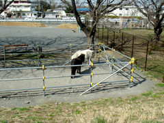 そして浅川左岸をしばらく走ると、左側に公園があって、ポニーが飼い殺し・・・