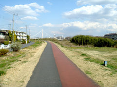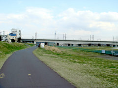 で、またデジャヴに襲われる感じで、くにっと曲がって橋を渡る場所を越えると、いつのまにか多摩川サイクリングロードになってます。