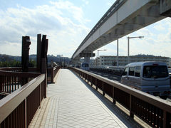 で、しばらく走るとこんな釣り橋っぽいものがあるのですが、これが歩行者専用。すげえね。