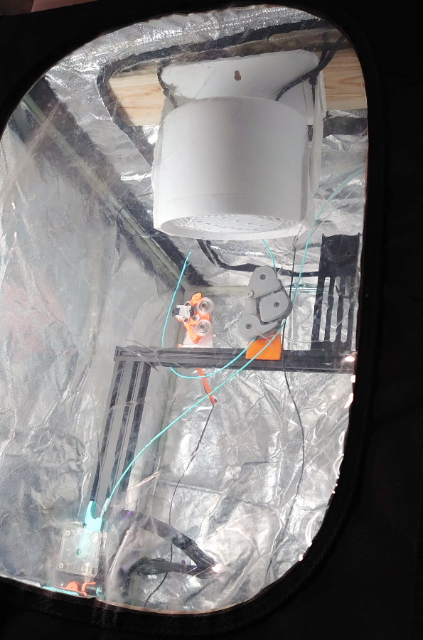 そんでヒーターは、3Dプリンタのカバーの中に上から吊った。てきとうすぎ