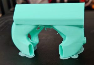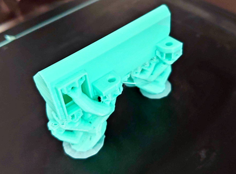 カバー、というかチャンバーを暖めていないときは、こんな形の印刷をすると、丈夫の四角い部分を印刷中に反りが発生して、足部分がベッドから剥がれたり、ベッドへの定着が強いときは足部分が割れたりしてた。あとツリー形状のサポートだと反りに引っ張られてバキバキ割れてた。それが全く問題なく印刷出来るようになったのは感動モノ。