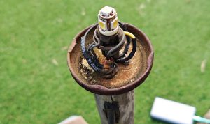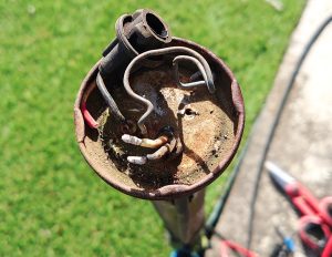 以前セリアのなんらかで作った庭園灯?が一個付かなくなって、見たら配線がサビて切れてた。あー、中に水入ったとき、排水する穴ないんだなコレ。