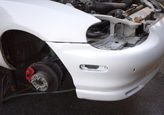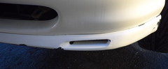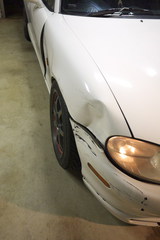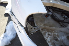 ところで右前のバンパーのへこみと穴は、今回の事故のモノでは無くて、いつのまにか付いてたキズと穴。たぶん駐車場で当て逃げ。右前なんて自分じゃぶつけないし。