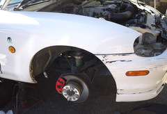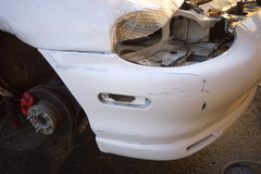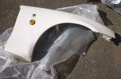 サフ2~3回吹いて、白吹いて、ある程度塗れてきたらフェンダーに被せてあったビニール外して