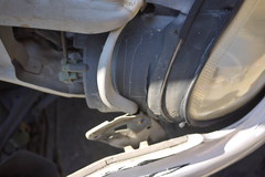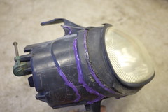 ライトを囲ってるステーが押されてひしゃげてライトに食い込んでます