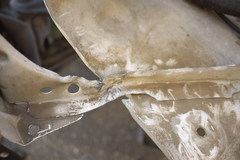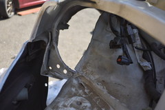 フェンダー裏のひんまがったステーは現物合わせで引っ張ったり叩いたりで位置合わせ