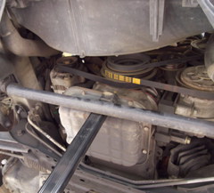 エンジンマウントがnismoの強化なのでエンジン傾かねーので、オイルパンの前のトコロに適当な棒かませて下からジャッキでグイっと