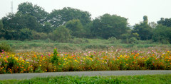 途中の安比奈公園ではコスモスと、オレンジ色の何かと雑草が生い茂ってました。