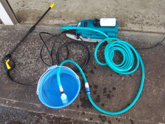 以前ウチにはボイラーつきのでけー高圧洗浄機があって、それは温水出るわチョー強力で吹き出しが少し下向いてるのでノズルを上から抑えてないとどんどん浮いていっちゃうわ、くらいのやつだったので車洗うのに便利だったのですが、さすがにそれと比べると温水でもないし(給水元がお湯ならいいんでしょうけど)