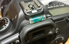 そーいえばEOS5DIIには電子水準器が無いので、使うときにはホットシューに付けるタイプのやつを付けるんですけど、なんとなく接着してみた