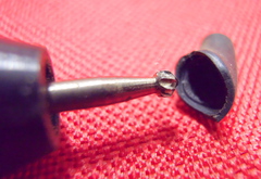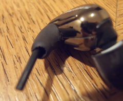 当初、MMCXのジャック付けてみようかと思ったけど、この根元にMMCXを固定させるうまい方法が思いつかなかったのと、ケーブルを本体に押し込もうとしてもビクともしないのでケーブルの処理がうまいこと出来なさげだったのでリケーブル化はあきらめ。殻割りもコワイしね。