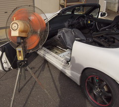 車内の方はしばらく天日干ししてみるもさっぱり乾く気配がないので