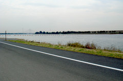 んでまた公園の駐車場から登って右へ曲がると彩湖(荒川調水池)の堰があったのでとりあえず渡る。