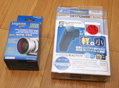 レイノックスのムービー用0.7倍ワイコンと、ノート用ACアダプター。