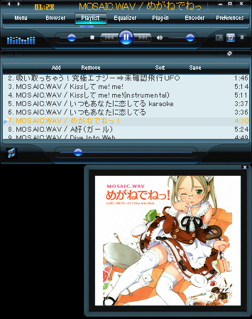 エンコードするときにアルバムのアートワークを埋め込んでおいてiTunesでiPodに転送するとアルバムアートが表示されて楽しくて、またiTunesで再生するとこれもまたアルバムアートが表示されるので楽しいのです。が、iTunesは単なるプレーヤーとしては重いし使いづらいのでWinampとかのプラグインで実現してるものはないかと探してたのですが見つからず。