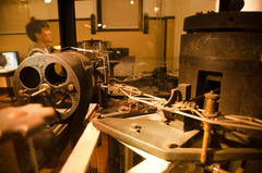 停止することなく杼を自動交換して織り続けるとか、糸が切れたら自動停止するとか、なんだか50もの発明が盛り込まれているそーな。