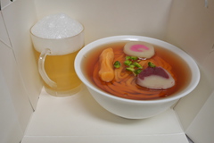 ラメーンのほう、麺はマロン、スープ部分は紅茶のゼリーっぽかった。後は練り菓子。