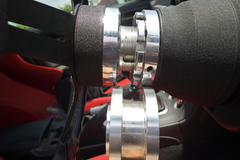 ほんとは、奥側に黒いスペーサー入れて、手前側に調整式を入れたかったんだけど、調整式スペーサーは中心の穴が小さくて、ホーンボタンが入らないのよね。