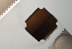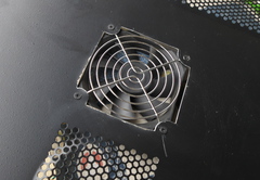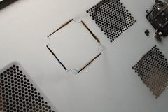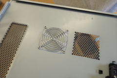 最終的には切った部分を指で触っても引っかかりが無いくらいまで手作業でヤスリがけして、4スミに穴開けしてファンを固定