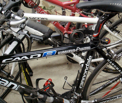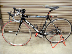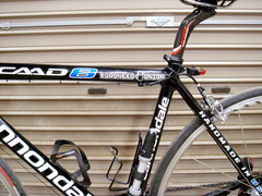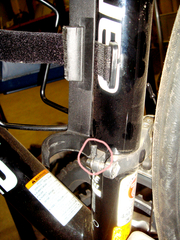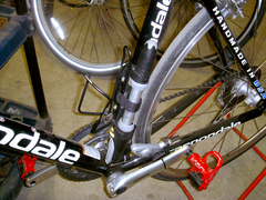 ダウンチューブのキャノのロゴが大きめのポンプで隠れちゃうのがちょっとなぁと思っていたので、シートチューブに移植することに。そのまま移植すると足というかクランクに当たりそうなので、まず、