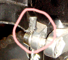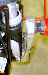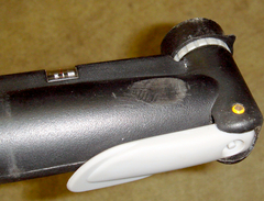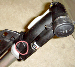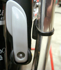 で、ポンプのヘッド部分が大きくて、出っ張り部分があるので、出来る限り車体と平行に付けるために、ヘッドの部分を回転するときに当たってじゃまな赤丸の部分をニッパでちょん切る