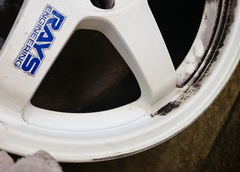 そんで、アミ出ちゃってるタイヤをこの白いTE37に入れた。