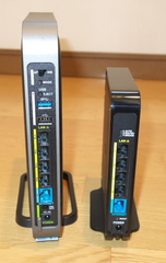 大きい方がWZR-1750DHPで小さい方がWHR-1166DHP。1750を親機にして、1166を子機として使うもくろみ。