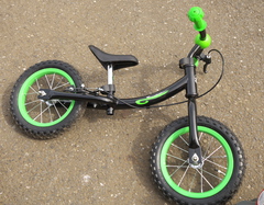 甥っ子が足けり自動車ばっかり乗っててなかなか補助輪付き自転車の、補助を外して練習をしてないようなので、そろそろ練習したほうがいいんじゃね。ってことで、足けり自転車を買ってみた