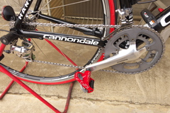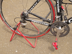 ぶら下げた状態で、ディレーラーの調整でもしてみるか、ってことでペダル回すと結構揺れるのよね。